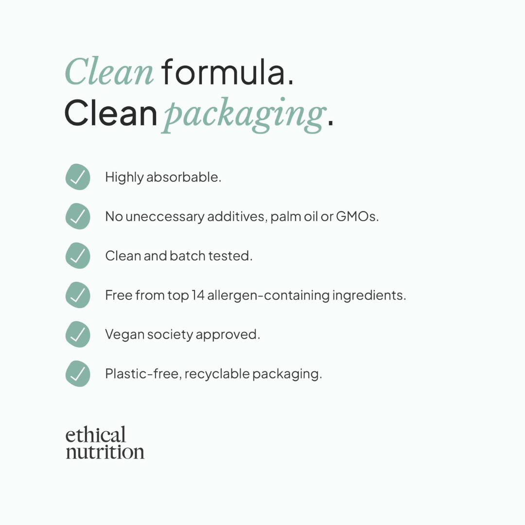 Suitable for vegetarians and vegans. All Ethical Nutrition products are free from animal-based ingredients and by-products. Registered with the vegan society.