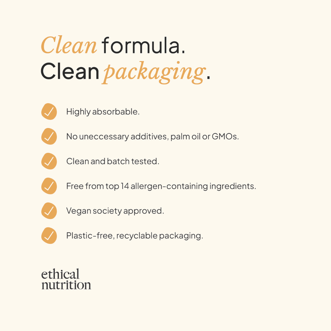 Suitable for vegetarians and vegans. All Ethical Nutrition products are free from animal-based ingredients and by-products. Registered with the vegan society.